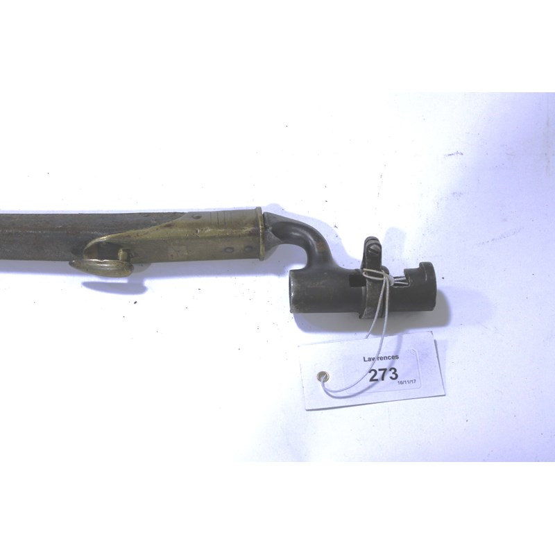 A Martini-Henri pattern 1876 socket bayonet & scabbard. Very clean blade of 21.1/4" length, complete with a brass and leather scabbard.