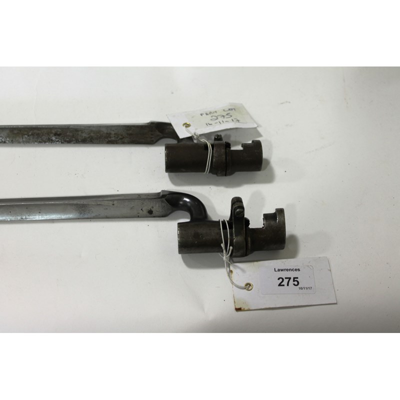 A BRACE OF UK BAYONETS. Two 1856 pattern socket bayonets one with Turkish markings the other 4364, both lack scabbards.