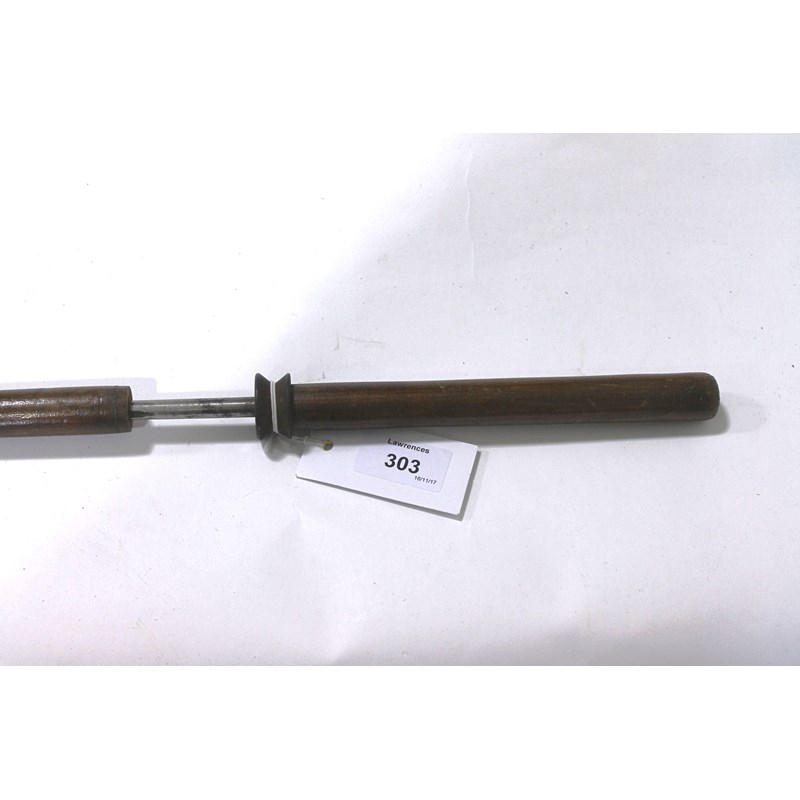 A SWAGGER/SWORD STICK. An officers swaggerstick with 11.1/2" circular tapering spike blade, in a wooden mount.