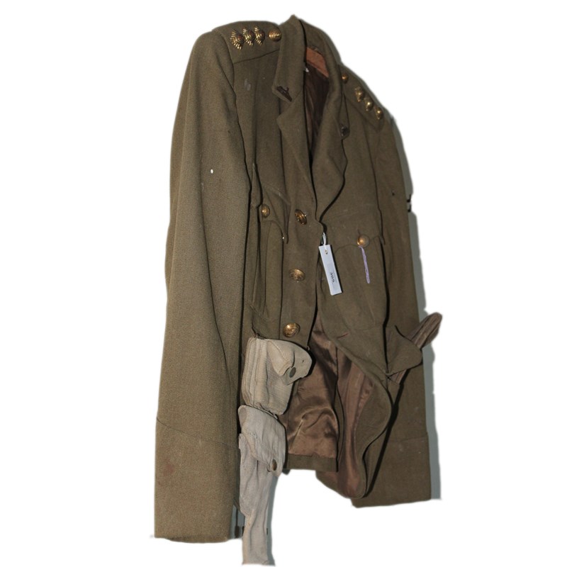 An Anderson of Edinburgh and Glasgow 1946 dated Jacket with Captains Rank. Made for an officer in the Gordon Highlanders (some moth damage evident)complete with buttons and a Side Cap, also webbing .38 caliber pistol holster.