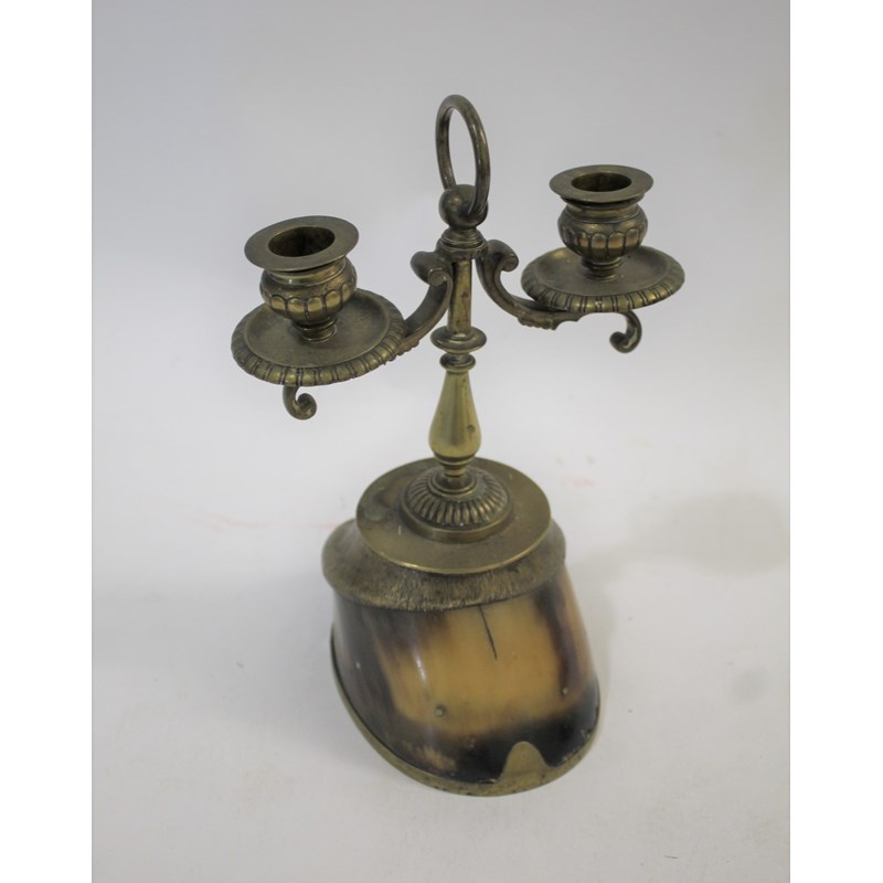 VICTORIAN MOUNTED HORSE HOOF CANDLESTICK - ARMY & NAVY