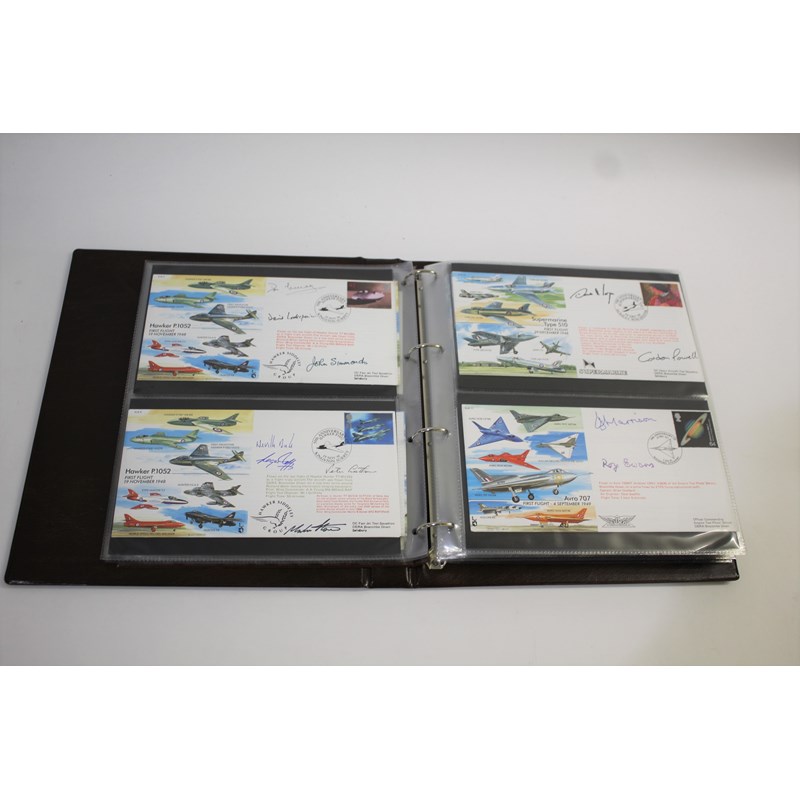 2 albums with approx 160 covers, many signed and some with multiple signatures. Including British Experimental Jet Aircraft Series (Gloster, De Haviland, Saunders Roe, Hawker, Armstrong, Avro Tot, Short, Fairey etc). The larger album with a detailed index. (2)