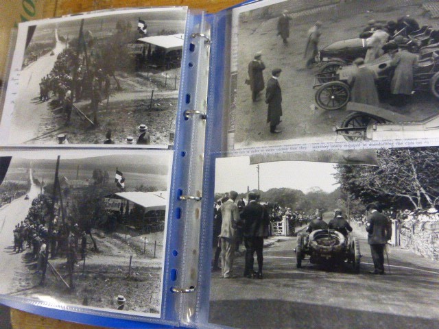 A series of half-plate photographs printed from original Agent Archer glass plate negatives, depicting the Isle of Man Eliminating Trials, together with copies of similar photographs from the Autocar magazine.