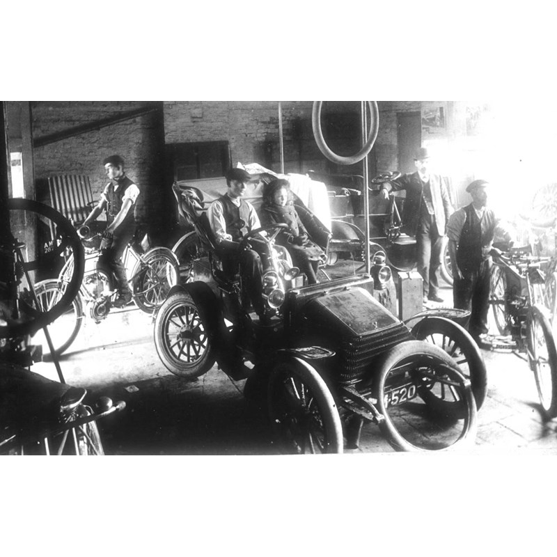 A very good set of photographs contained in 5 black folders. Featured are the first Wolseley vehicles and many good images from the veteran period, some press photographs, some obtained from the Peter Roberts Collection, some laid to card, and a good selection of racing and competition vehicles, including Charles Rolls in the 1905 Gordon Bennett. The Edwardian and early vintage period folders have images of engines, chassis, trade stands, coach-built cars, Flewitt, Hamshaw, Cole, Elkington, and others, good street scenes, together with racing at Brooklands. The 1930s folder includes interesting images of Patrick Motors, showrooms, speed events, promotional and private postcards, most with manuscript or typed captions verso with the date of acquisition in many cases. (5)