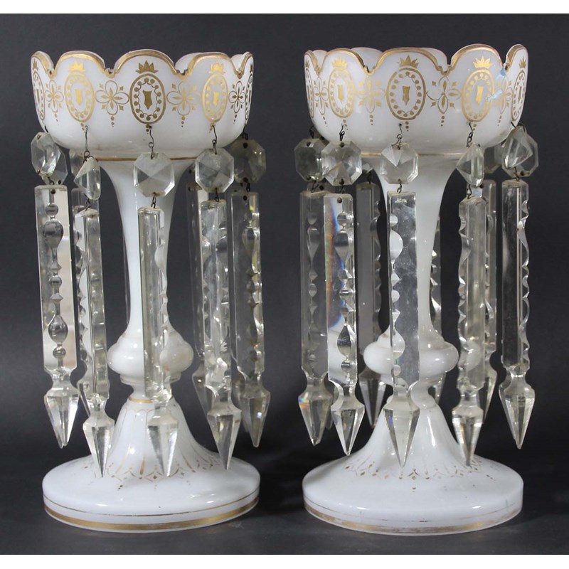 PAIR OF BOHEMIAN STYLE GLASS LUSTRES, late 19th century, the frosted bodies with gilt decoration, height 33cm (2)