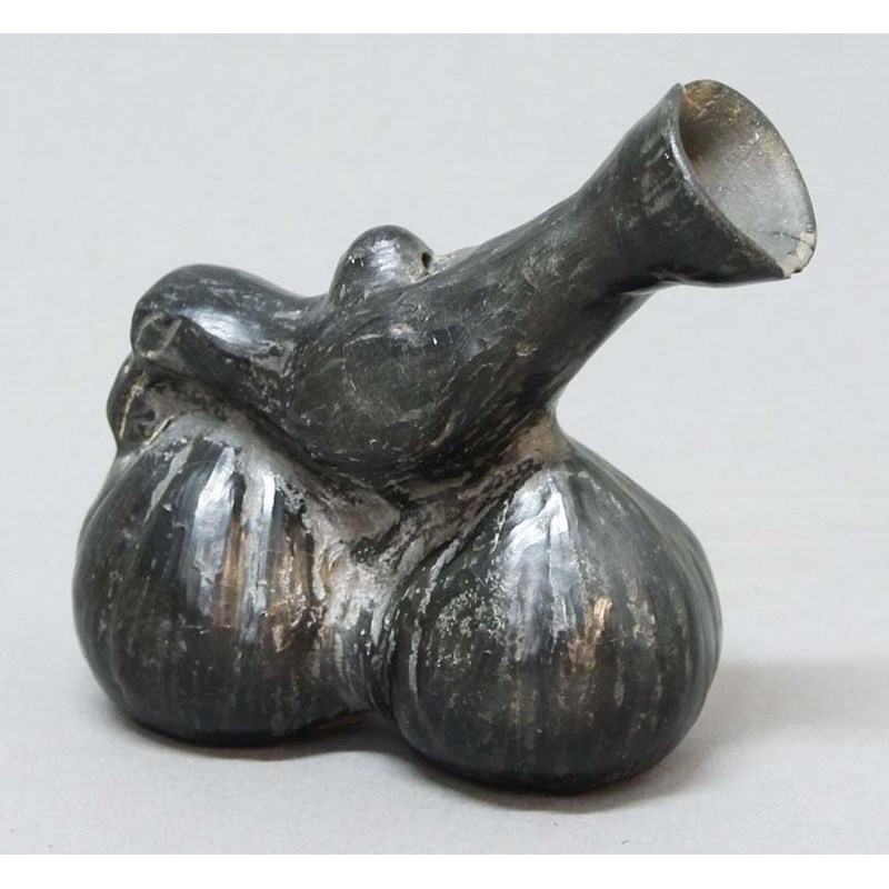PRE-COLUMBIAN STYLE BIRD WHISTLE, Chimu style, modelled as a bird on two small gourds, length 16cm