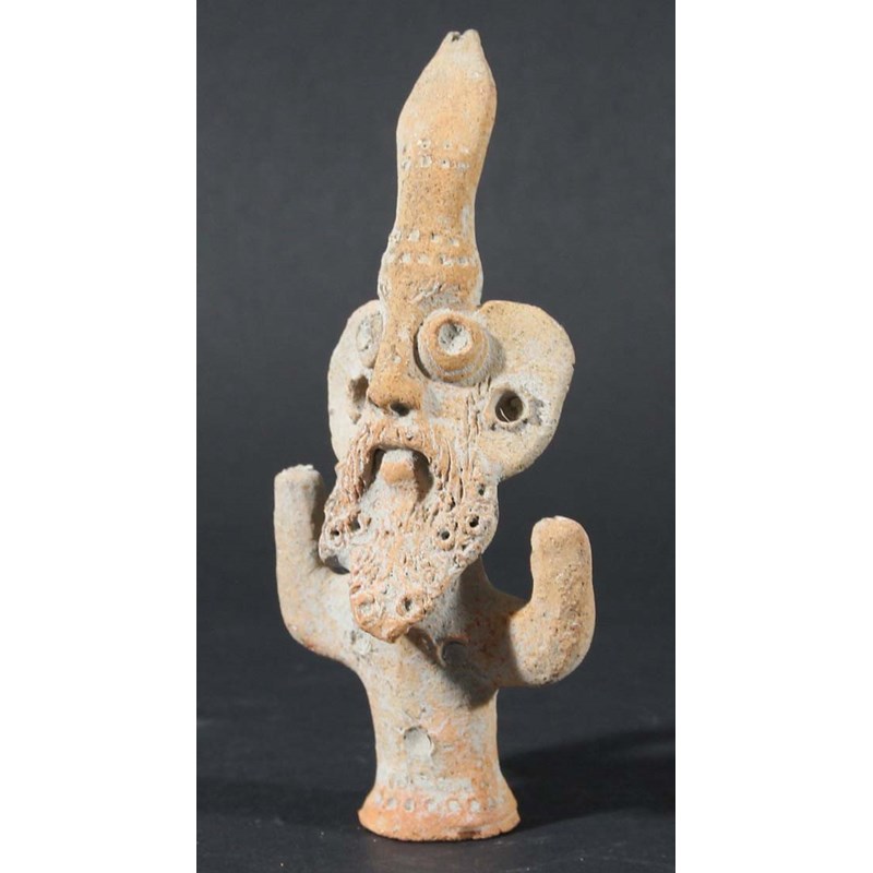 possibly Bronze Age/first millennium BC, the bust with a bearded face and raised arms, height 13cm