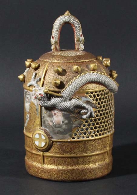 JAPANESE SATSUMA RETICULATED, DOUBLE WALL POT POURRI OR KORO AND COVER,