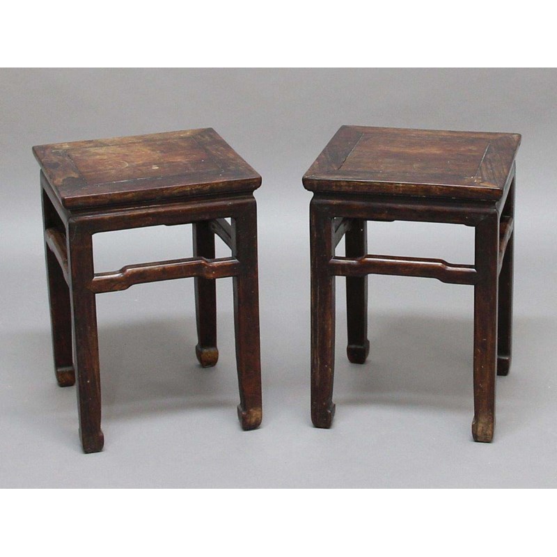 late 18th century, the square top above shaped stretchers on square section legs, height 49cm, width 35cm, depth 35cm (2)
