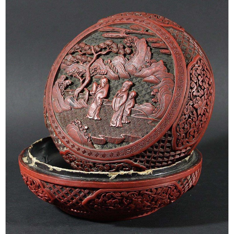 CHINESE CINNABAR LACQUER CIRCULAR BOX AND COVER,