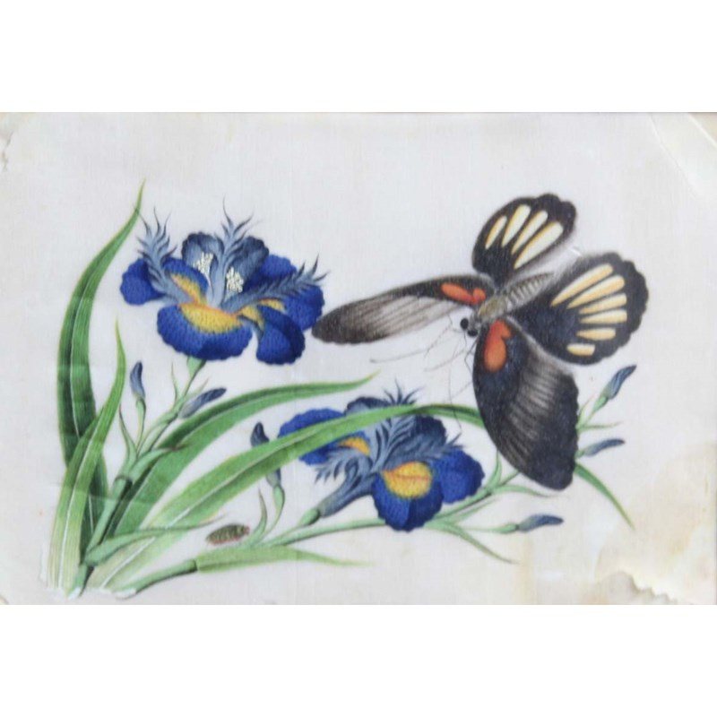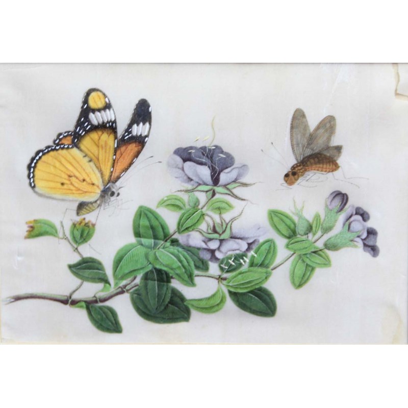 SET OF SIX CHINESE PITH OR RICE PAPER PAINTINGS, of butterflies and other insects in flowering branches, 12cm x17.5m (6)