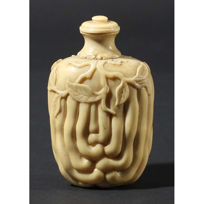 CHINESE IVORY SNUFF BOTTLE, 19th century, carved as a finger citron, height 8.5cm