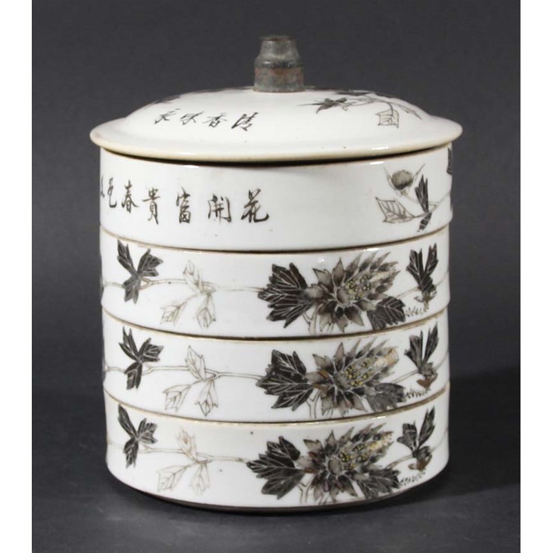 CHINESE SET OF FOUR STACKING DISHES AND COVER,