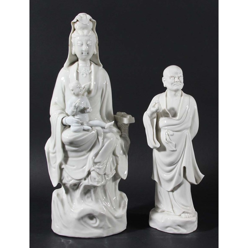 CHINESE BLANC DE CHINE FIGURE OF GUANYIN AND A CHILD,