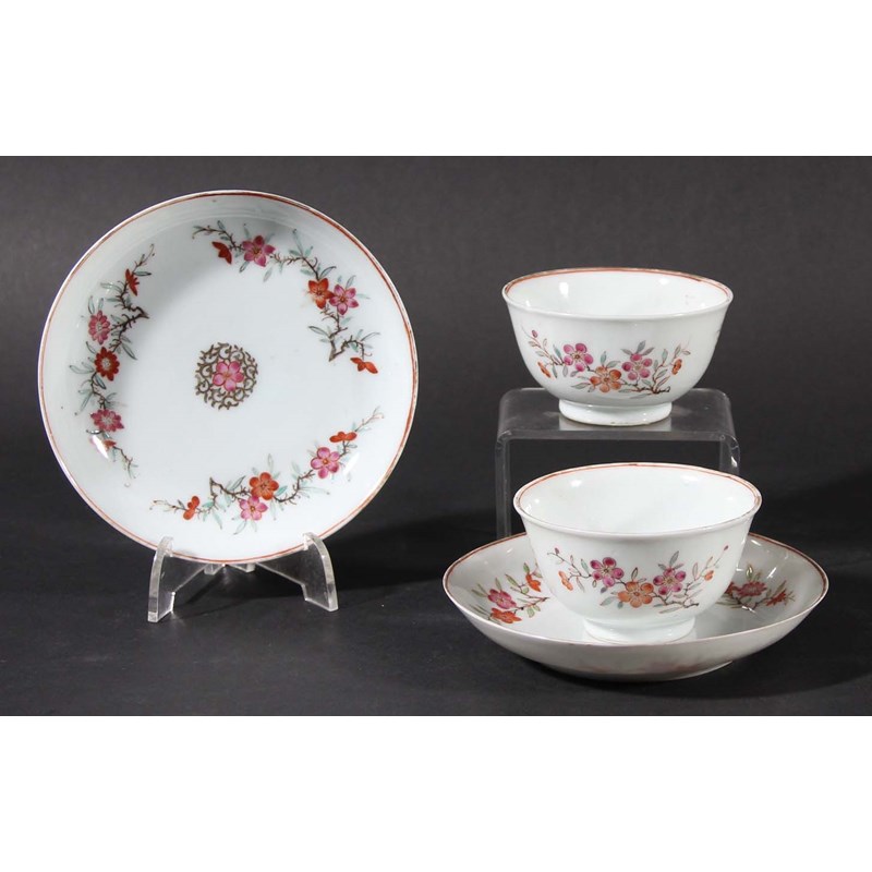 PAIR OF CHINESE FAMILLE ROSE TEA BOWLS AND SAUCERS,