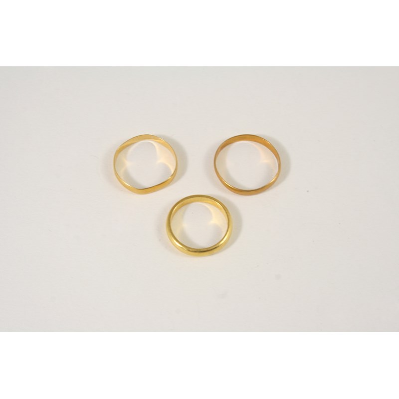 THREE 22CT. GOLD WEDDING BANDS total weight 7.2 grams.