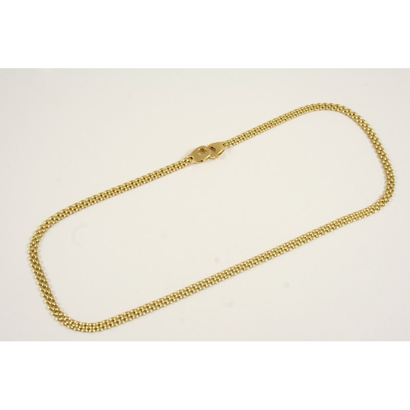 AN 18CT. GOLD BRICK LINK CHAIN NECKLACE 40cm. long, 14 grams.