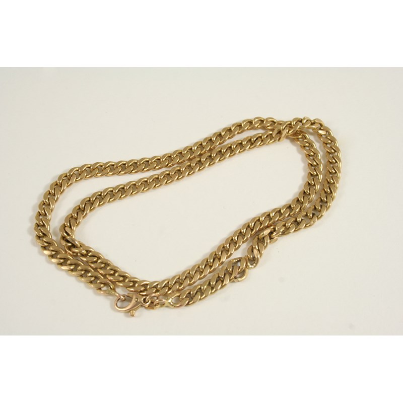 A 9CT. GOLD FLAT CURB LINK BRACELET 50cm. long, 14.7 grams. (damaged).