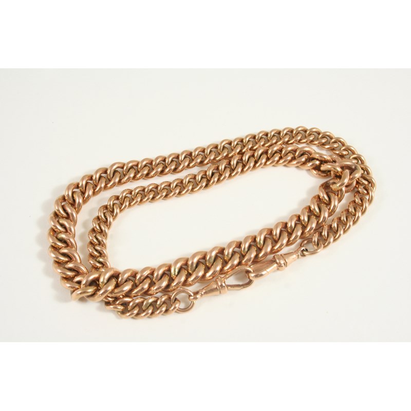 A 9CT. GOLD GRADUATED CURB LINK WATCH CHAIN 48.5cm. long, 102 grams.