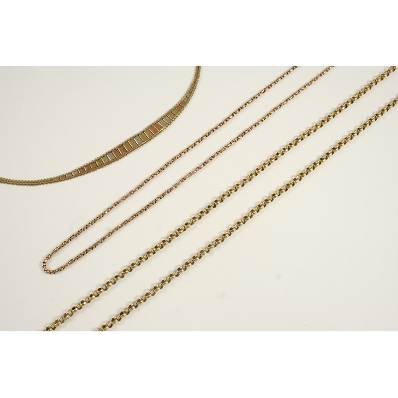40cm. long, 11.4 grams, together with a 9ct. gold necklace, formed with circular hammered links, 74cm. long, 14.6 grams, and a 9ct. gold chain necklace, 45cm. long, 4.0 grams.