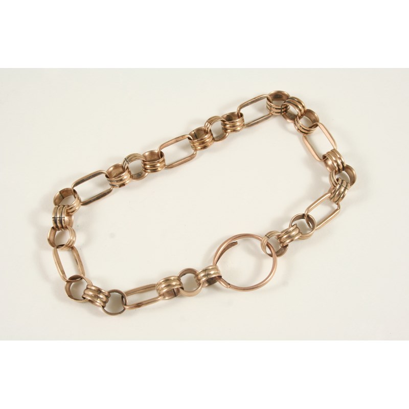 A GOLD CHAIN formed with circular and oval-shaped links, 25cm. long, 27.7 grams.