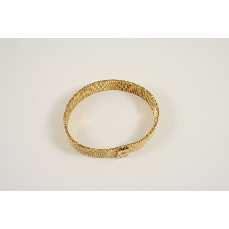 A 9CT. GOLD BRACELET of mesh design, 18.5cm. long, 28 grams.