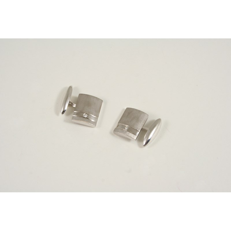 A PAIR OF GOLD AND DIAMOND CUFFLINKS each 18ct. white gold textured link is set with a circular-cut diamond, 12.9 grams.