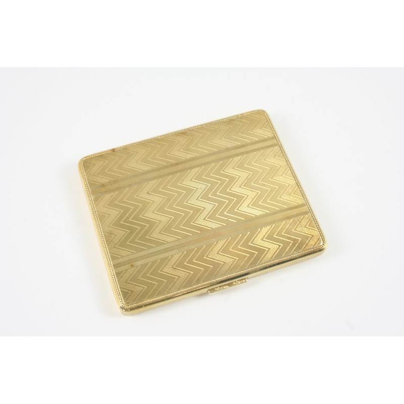 A 14CT. GOLD CIGARETTE CASE both cases with engine turned decoration, 8 x 7cm., 93 grams. With case by Boyes, Bassett & Co., Shanghai
