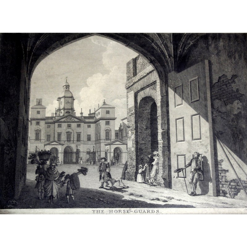 LONDON VIEWS: SCOTLAND-YARD [actually WHITEHALL COURT] WITH PART OF THE BANQUETING-HOUSE; A VIEW OF ST. JAMES'S GATE, FROM CLEVELAND ROW; THE HORSE-GUARDS; COVENT GARDEN PIAZZA