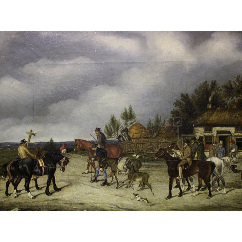 WILLIAM HENRY M. TURNER (Fl.1849-1887) HORSE TRADERS AT A COUNTRY HALT Signed, oil on canvas 22 x 29.5cm. * The artist is occasionally known as `Horse Fair Turner` in order to distinguish him from another sporting artist of the same era whose works are more generalised in nature. Turner's pictures are typically in a small format, packed with animals and figures and minutely detailed. This work is from the earlier part of the artist's career.