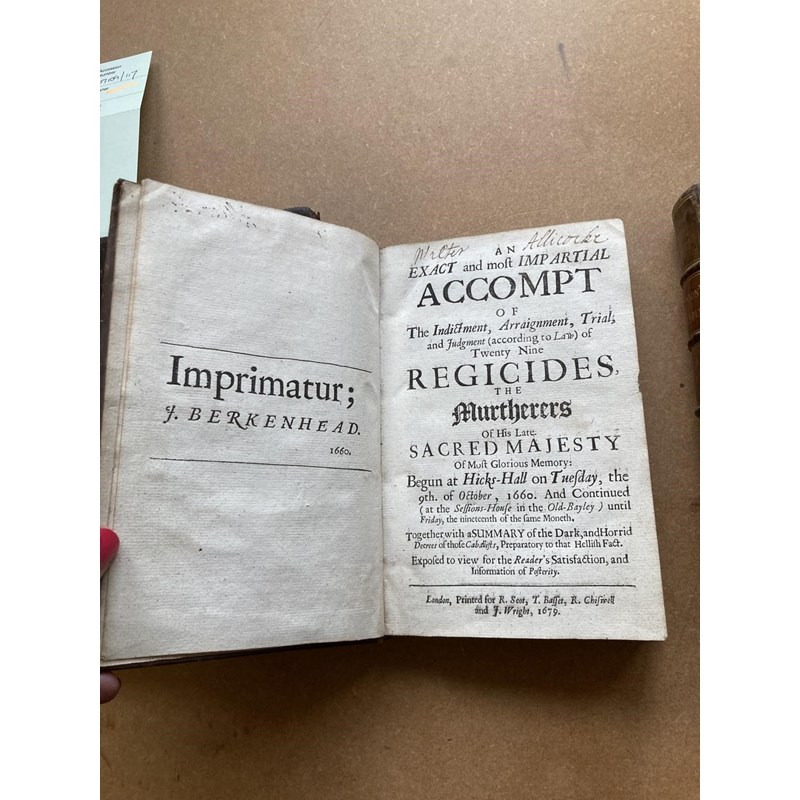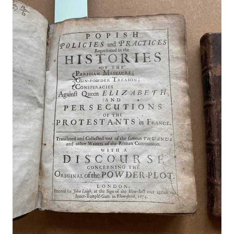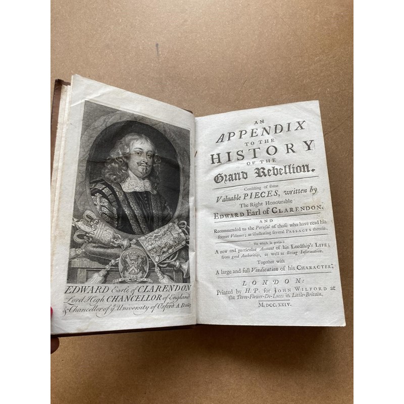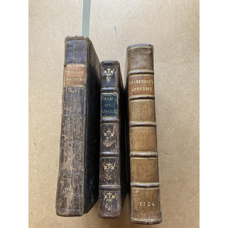 [Stephens, Edward and Jacobus Augustus Thuanus] Popish Policies and Practices Represented in the Histories of the Parisian Massacre; Gun-powder Treason; Conspiracies Against Queen Elizabeth, and Persecutions of the Protestants in France, 3 parts in one volume, some browning and occasional rust-marks, contemporary calf, rebacked, later endpapers, bookplate of Merthyr Guest, 4to, London: John Leigh, 1674; Nottingham, Heneage Finch, Earl of. An Exact and most Impartial Accompt of... Twenty-Nine Regicides, the Murtherers of His Late Sacred Majesty, imprimatur leaf, contemporary calf, bookplate of Merthyr Guest, 8vo, London: R. Scot et al., 1679; Clarendon, Edward, Earl of. An Appendix to the History of the Grand Rebellion, engraved portrait frontispiece, contemporary panelled calf, bookplate of Merthyr Guest, 8vo, London: John Wilford, 1724 (3)