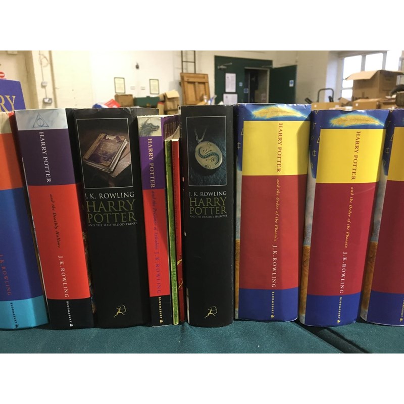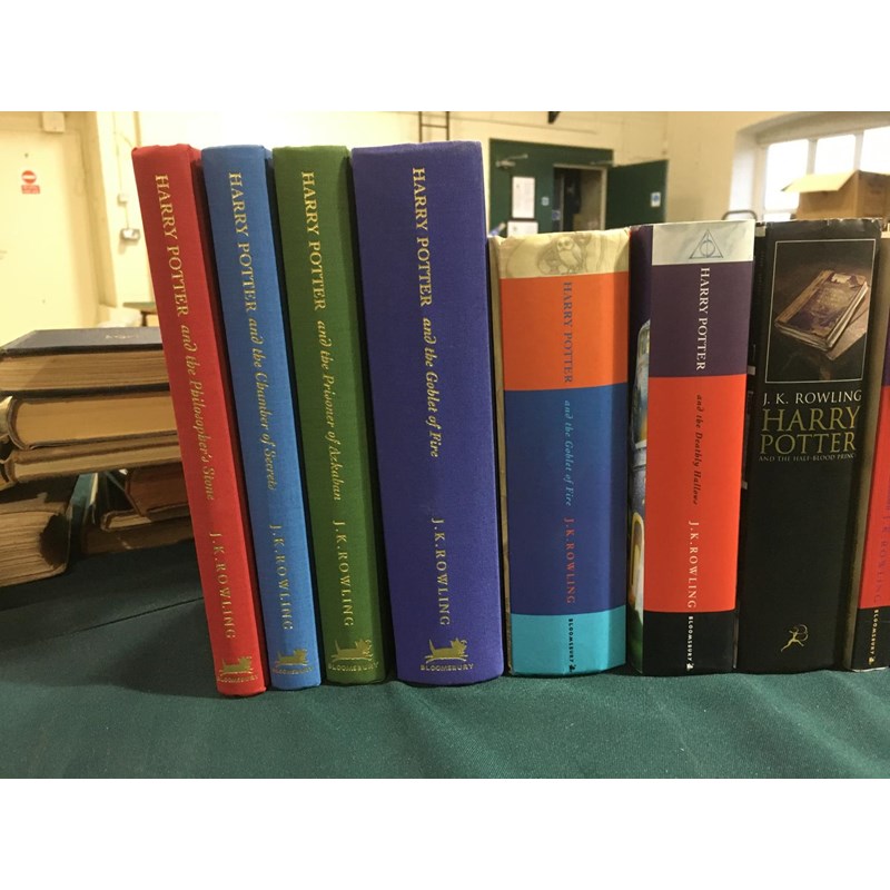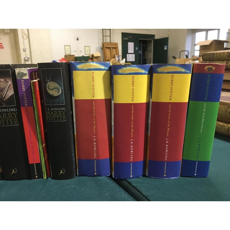 Rowling, J. K. Harry Potter and the Philosopher's Stone, 8vo, London: Bloomsbury, 1999; Harry Potter and the Chamber of Secrets, 8vo, London: Bloomsbury, 1999; Harry Potter and the Prisoner of Azkaban, 8vo, London: Bloomsbury, 1999; Harry Potter and the Goblet of Fire, 8vo, London: Bloomsbury, 2000; all deluxe editions, original cloth gilt, all edges gilt; and 11 others Harry Potter, 8vo (15)