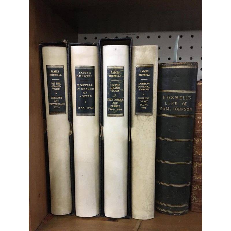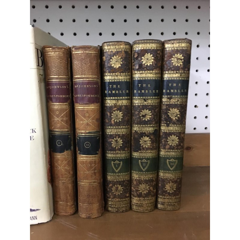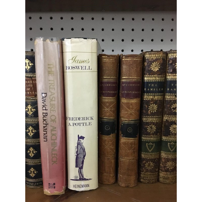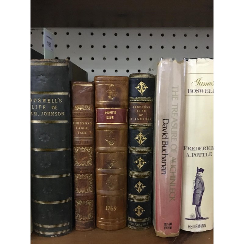 Johnson, Samuel. Letters to and from the late Samuel Johnson, L.L.D., 2 volumes, engraved portrait frontispiece, contemporary calf, joints cracked, 8vo, London: A. Strahan and T. Cadell, 1788; The Rambler, 3 volumes, thirteenth edition, engraved portrait frontispiece, three additional engraved titles, contemporary etched calf, spine tooled gilt, 8vo, London: T. Longman, et al., 1794; Dr. Johnson's Table-Talk: Containing Aphorisms on Literature, Life, and Manners, some spotting, nineteenth century half calf, joints cracked, 8vo, London: C. Dilly, 1798; and nine others, similar, 8vo (15)