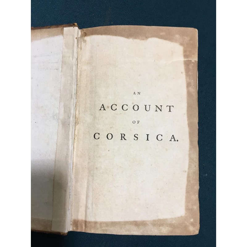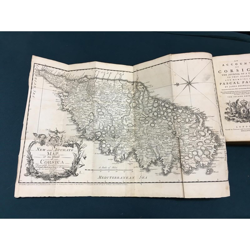 Boswell, James. An Account of Corsica, the Journal of a Tour to that Island, second edition, half-title, folding engraved map frontispiece, torn and repaired, lightly browned throughout, occasional spotting, contemporary speckled calf, joints cracked, 8vo, London: Edward and Charles Dilly, 1768