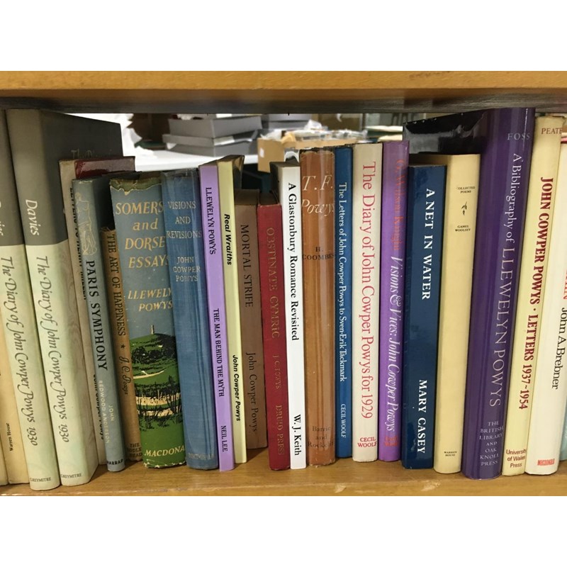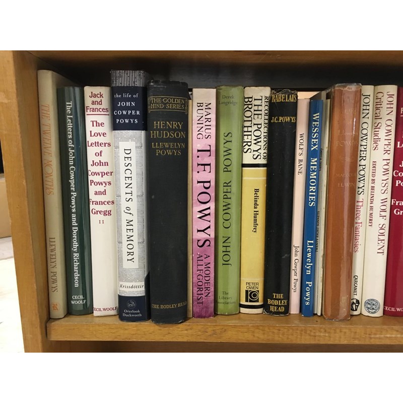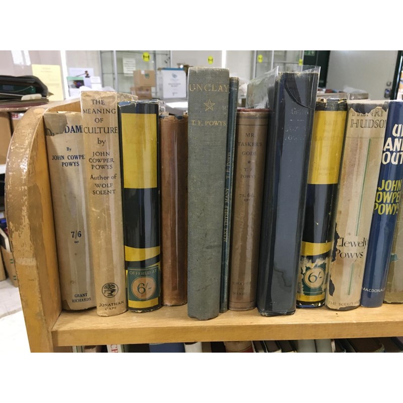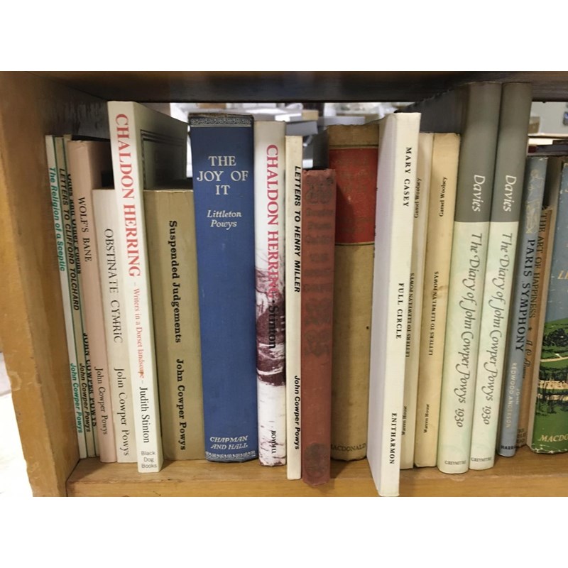 Powys Brothers. A group of 120 volumes approx. by or concerning the Powys brothers, including: Powys, John Cowper. Ducdame, first edition, original cloth, dust-jacket, torn with loss, 8vo, London: Grant Richards, 1925; The Meaning of Culture, first edition, original cloth, dust-jacket, 8vo, London: Jonathan Cape, 1930; Powys, Llewelyn. A Pagan's Pilgrimage, first edition, original cloth, dust-jacket, 8vo, London: Longmans Green, 1931; Rats in the Sacristy, first edition, original cloth, dust-jacket, extremities chipped with loss, 8vo, London: Grant Richards, 1937; Powys, T. F. Make Thyself Many, number 158 of 285 copies, signed, original cloth gilt, 8vo, London: Grayson and Grayson, 1935; Mr Tasker's Gods, first edition, original cloth, dust-jacket, 8vo, London: Chatto and Windus, 1925; and 115 others, approx,, including criticism, biography and fiction, v.s. (120)