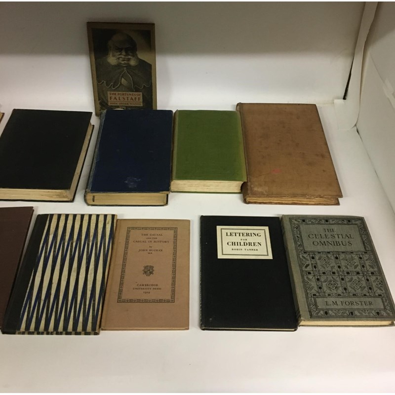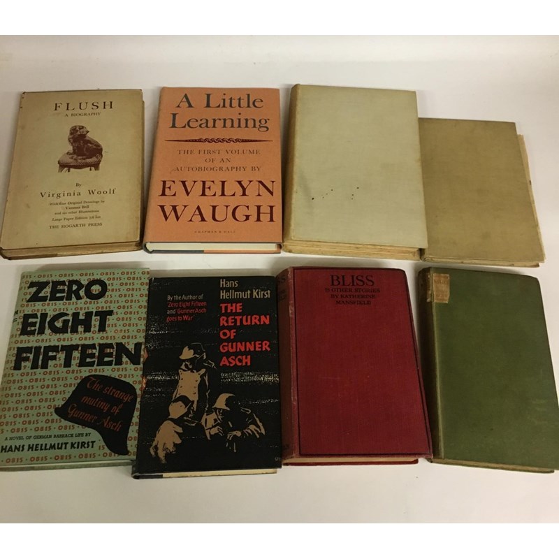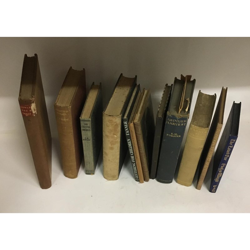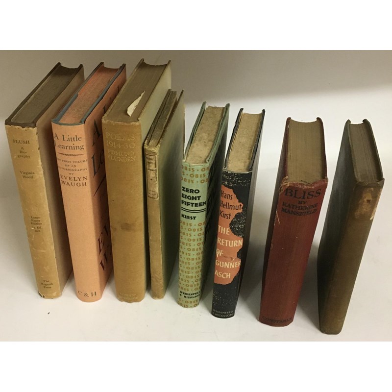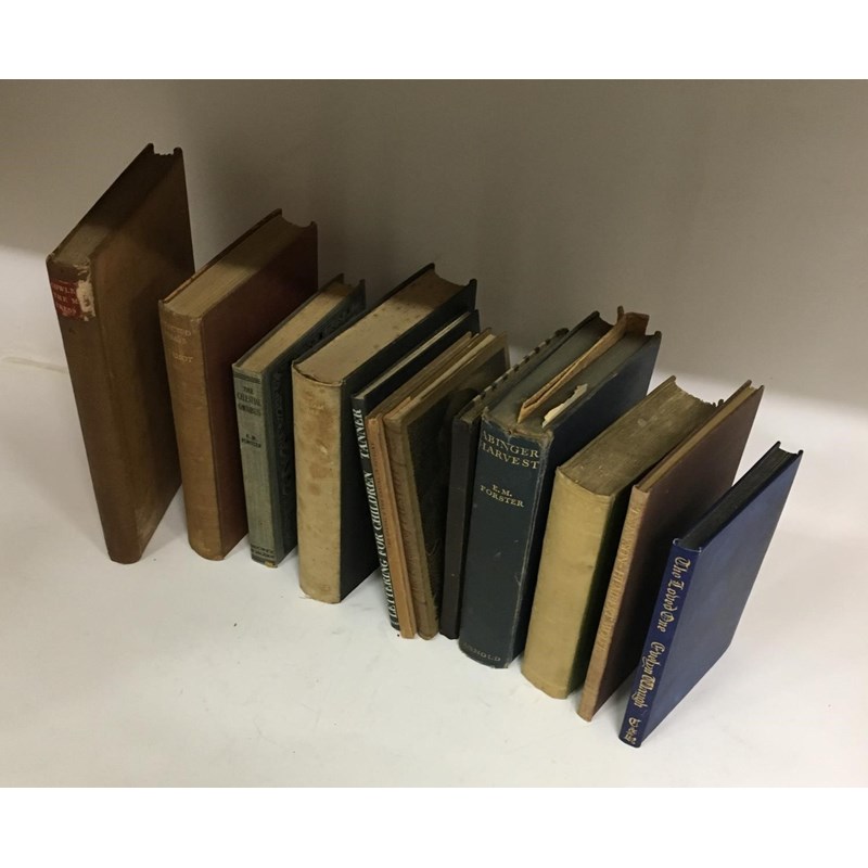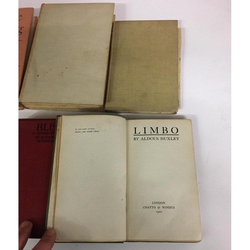 Huxley, Aldous. Limbo, first edition, original cloth, soiled, endpapers scuffed, ex-library copy, stamped 'Mechanics' Institute G.W.R. Swindon', 8vo, London: Chatto and Windus, 1920; [Jones, David, et al.] Diary with Dominican Calendar and XII Wood-Engravings, first edition on handmade paper, 12 wood-engraved vignettes, the first by David Jones, cloth-backed boards, lightly soiled, 8vo, Ditchling: S. Dominic's Press, 1928; Wolfe, Humbert. Tennyson, number 210 of 250 copies, signed by the author, original cloth, 8vo, London: Faber and Faber, 1930; Mansfield, Katherine. Bliss and Other Stories, second impression, original cloth, 8vo, London: Constable and Company, 1920; and 16 others, 20th century literature and poetry, v.s. (20)