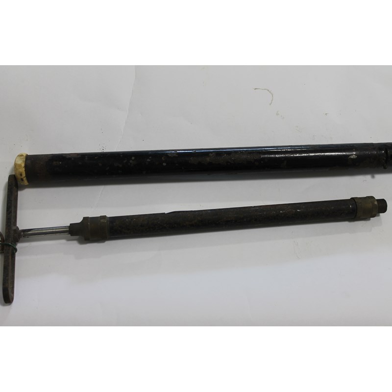 A 19thC Air Gun in Walking Stick or Cue form, 37" in length with steel body. No visible maker with button trigger and rear sight also button trigger present. Loaded via a folding lever, with front sight and horn blanking plug.