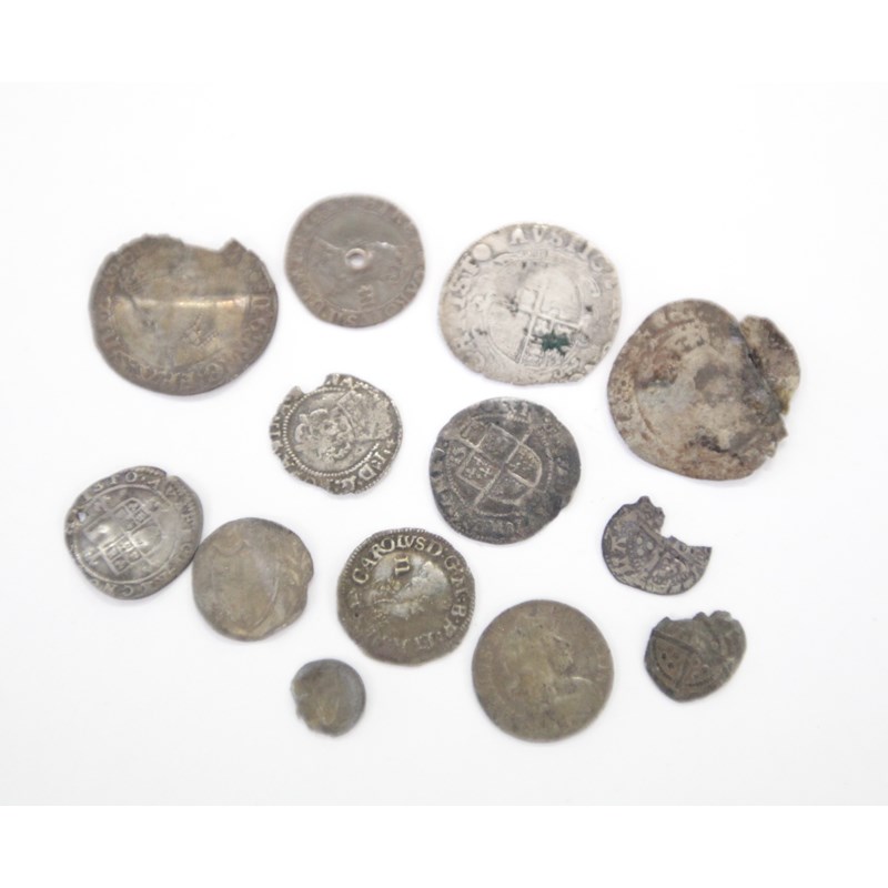 1. A Longcross Penny of Henry 111 Canterbury Mint. 2. A drilled Loncross Penny of Henry 111. 3. An unidentified Longcross Half Penny with amulets by the crown. 4. A Henry 11 Penny. 5. An unidentified Half Penny with saltires by the neck, etc.