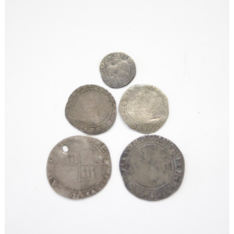 HAMMERED COINAGE. Including Elizabeth 1 Shillings with a/ Mintmark a Martlet, b/ Mint mark a Lis. An Elizabeth 1 Sixpence with (A) mint mark, another dtaed 1583. An Elizabeth 1 Threepence piece dated 1680.