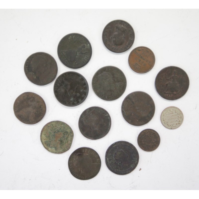 Including a Charles 1 Farthing dated 1672, George 1 Farthings dated 1719-1720. George 11 dated 1734-1736-1754 & 1759. George 111 Farthings dated 1775-1799-1806, etc