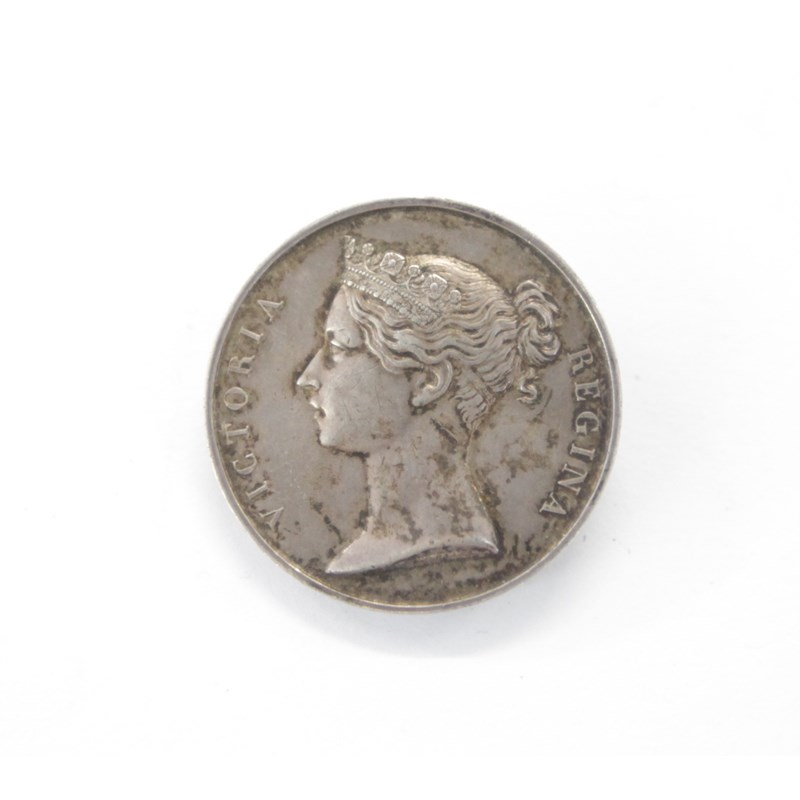 An 1842 China medal brooch mounted on the reverse, named to William Brushwood HMS Hyacinth. Whilst serving on Hyacinth he was a Boy 1st Class, later Discharged Dead in 1869, as a 2nd Master. Born in Elson, Alverstoke , Hampshire on January 17th 1821. He entered the service as a Boy posted to HMS Hyacinth (Crew Number 30) a Favourite Class Sloop. Armed with 16 x 32 Pounder Carronades with 2 x 9 Pounder Bow Chasers, having a crew of 125 Officers and Men. Launched in May 1829, serving first on the East India Station 1829-41 , then posted to the China Station . She took part in the 1st Opium War from 1839 until 1842, when peace was signed.