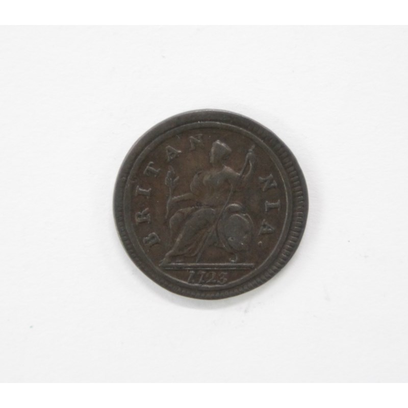 A FARTHING PIECE. A copper George 1 farthing or quarter penny piece, dated 1723.