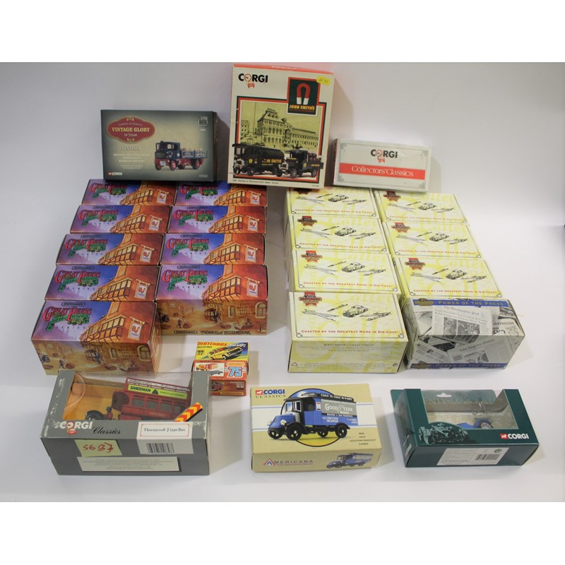 including 9 boxed Matchbox Great Beers of the World models (YGB18 1931 Morris Van, YGB21 1932 Mercedes Benz, YGB13 1926 Ford Van etc), 7 boxed Matchbox Collectibles, Corgi Sentinel Steam Wagon DG4, Corgi 98481 Mack Goodyear Van, Matchbox 57 Wild Life Truck, Matchbox 43 Steam Locomotive, etc.