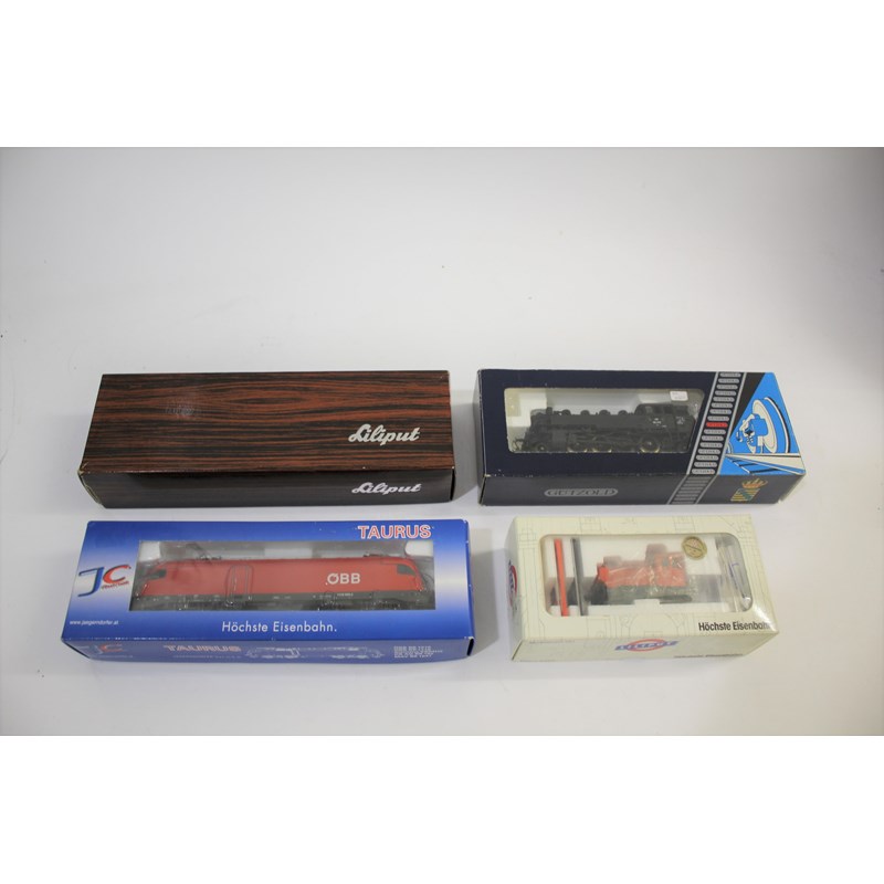 BOXED LOCOMOTIVES - OBB AUSTRIAN FEDERAL RAILWAYS 4 boxed locomotives, Liliput 160 11, Gutzold BR 86 OBB, Taurus Jaegerndorfer Collection 21020 OBB, and Liliput 107 50. (4)
