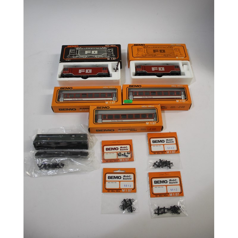 HO GAUGE - BEMO BOXED LOCOMOTIVES & OTHER ITEMS including 2 boxed Bemo locomotives, 126071 Furka-Oberalp (2 of the same models, if different colour boxes), 3 boxed coaches, accessories in packets etc.