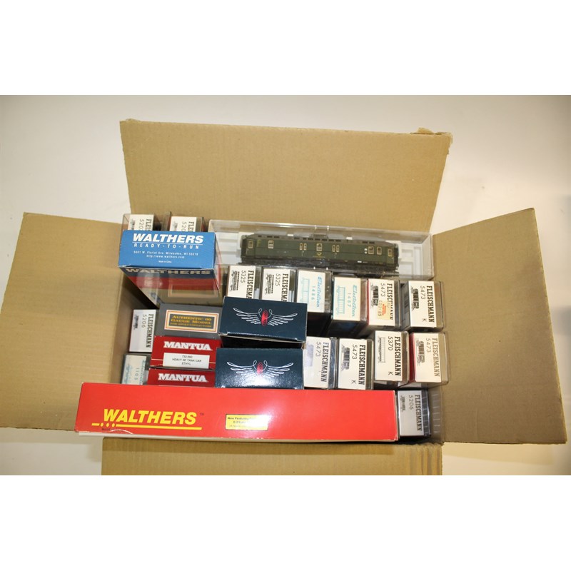 FLEISCHMANN BOXED MODELS - HO GAUGE a variety of boxed Fleischmann coaches and rolling stock, also with a Walther boxed set of Twin Hoppers, Liliput by Bachmann (2), Mantua (2), Electrotren etc.