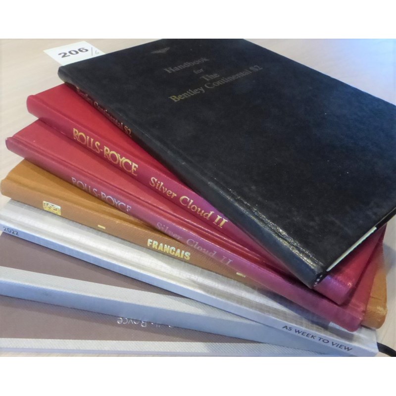 ROLLS-ROYCE & BENTLEY T. SERIES. A French Handbook, TSD 2288, no date, brown cover. Rolls-Royce Silver Cloud II, c1960 with a red leatherette wrap-round cover, editorial soiled. Rolls-Royce Silver Cloud II, TSD 754, a 1973 reprint, red leatherette cover. Bentley Continental S2, TSD 783, 2nd edition, black cover and two Rolls-Royce Phantom Coupe model Press Information booklets. (6)