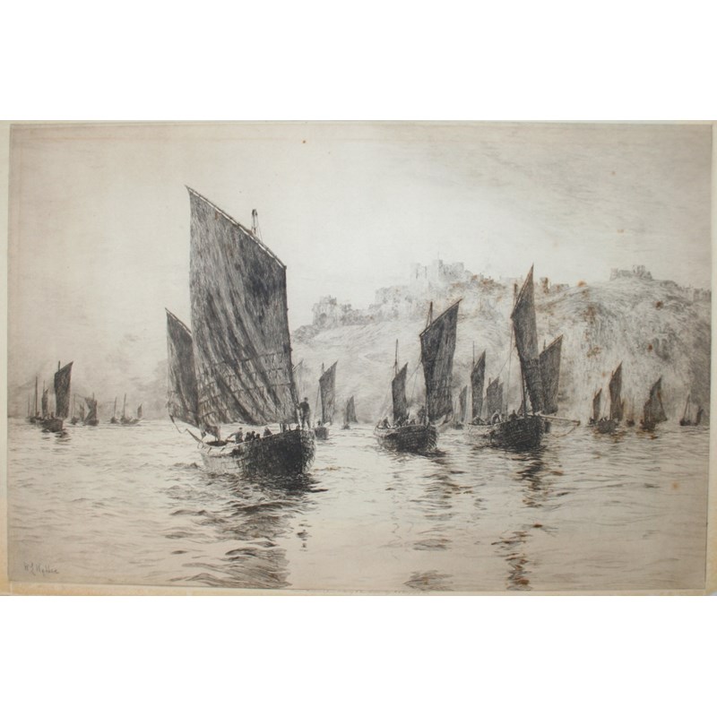 WILLIAM LIONEL WYLLIE, RA (1851-1931) FISHING LUGGERS OFF DOVER Etching, published by R. Dunthorne, 1905, signed in pencil within the image, unframed 27.5 x 43.5cm.