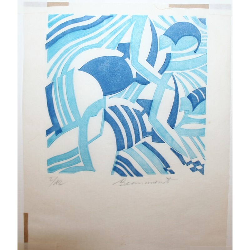 Linocut printed in colours, 1932, on thin white oriental laid, signed in pencil and numbered 2/12, unframed