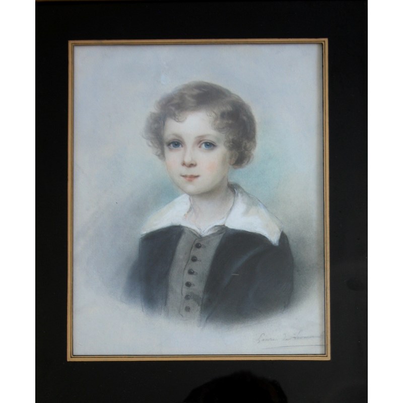 Bust length, wearing a dark coat and grey waistcoat, signed indistinctly (Laure de Loess...;), pastels